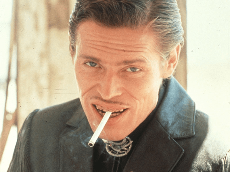 I also read that the film almost received an X rating for the scene in which the villain, Bobby Peru (Willem Defoe) blows his own head off with a shotgun. Again, there is a comedic factor to the end of this scene, where his head rolls and bounces across the floor. They scraped by with an R rating by adding more gun smoke to the scene, to hide the shot of the head detaching from the body.