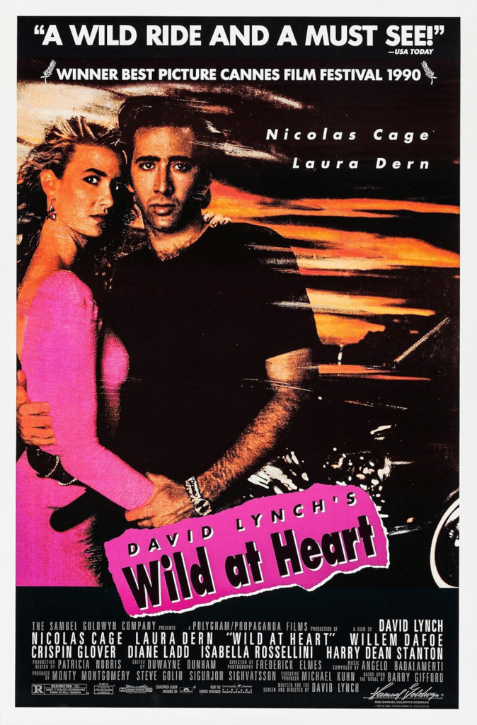 This week I got the fortunate chance to watch Wild at Heart (1990), a film written and directed by one of my personal favorites, David Lynch. It also happens to star another personal favorite of mine, Nicolas Cage, and features in a tertiary role a third personal favorite of mine, Willem Dafoe. I will start this review off by saying that I know I am biased towards these people being on the screen in front of me, or behind the camera creating what is put on the screen in front of me. I hope this doesn’t tarnish my review, but for me, this would be a hard combination of writer/director and actor(s) for me to see in something I wouldn’t enjoy.